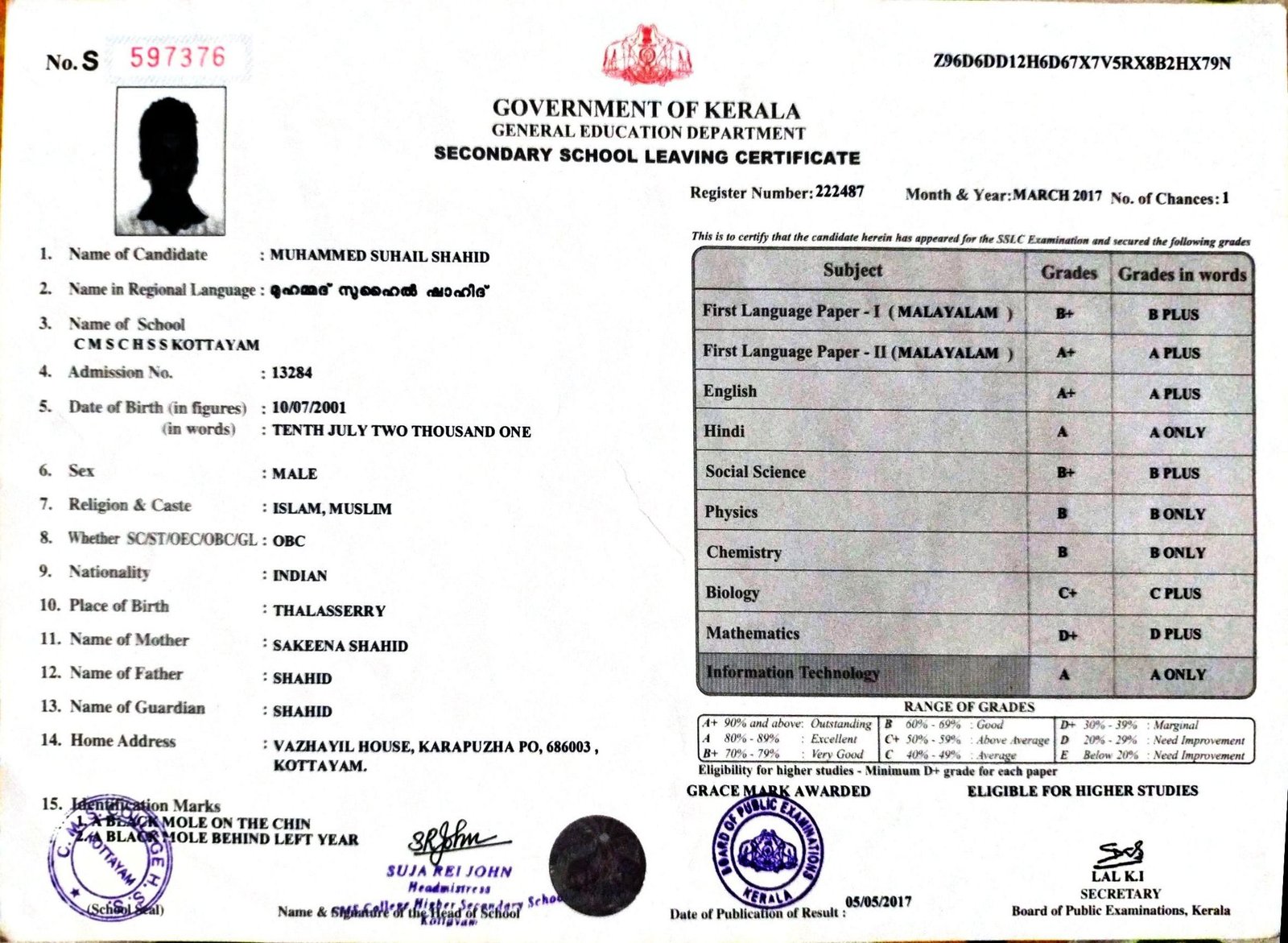 REQUEST FOR DETAILED FEE STRUCTURE AND BONAFIDE CERTIFICATE