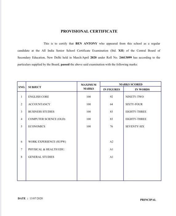 • REQUEST FOR BONAFIDE CERTIFICATE