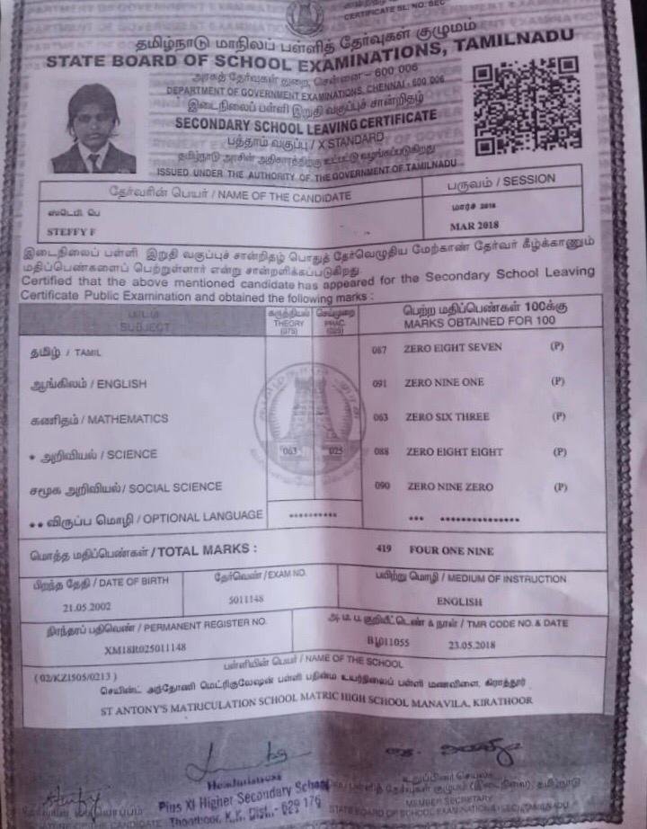 steffy sslc | RAJAGIRI VISWAJYOTHI